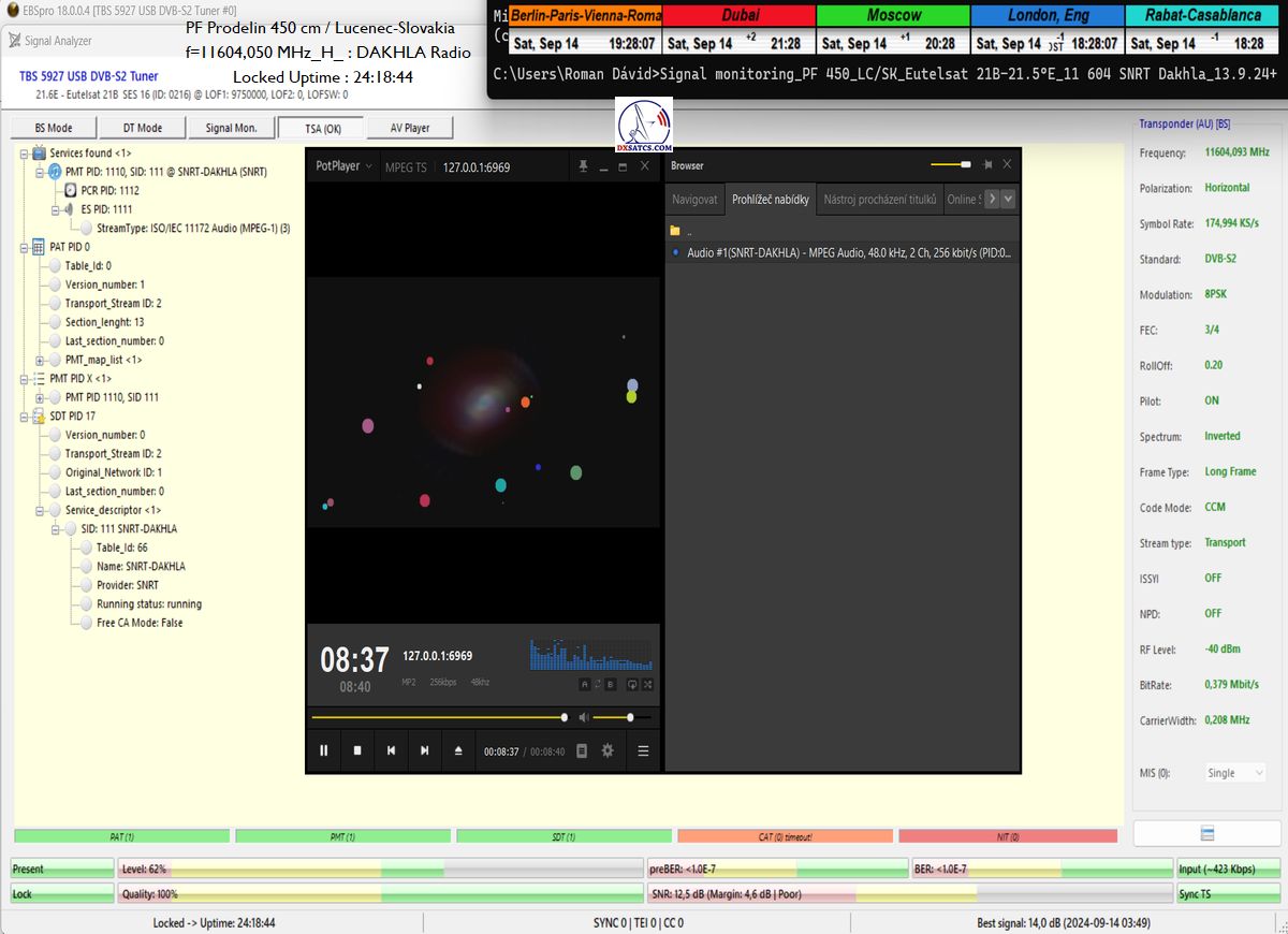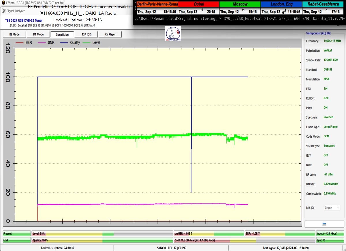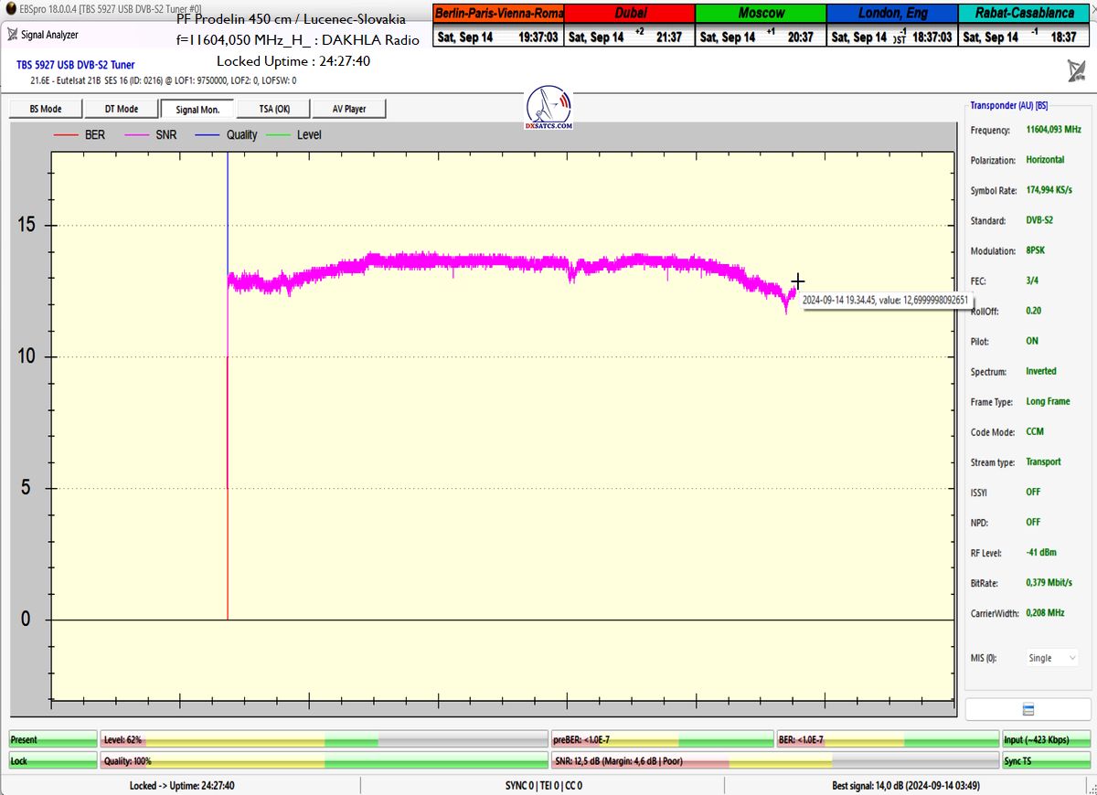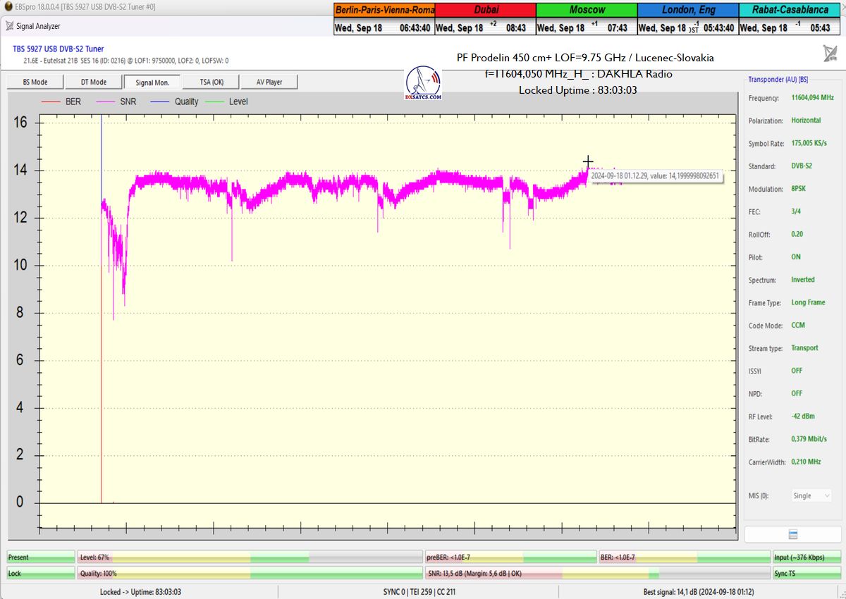 >Eutelsat 21B at 21.5°E_Low Symbol Rate>SR=175 ksym/s in satellite reception practice & Radio Dakhla <