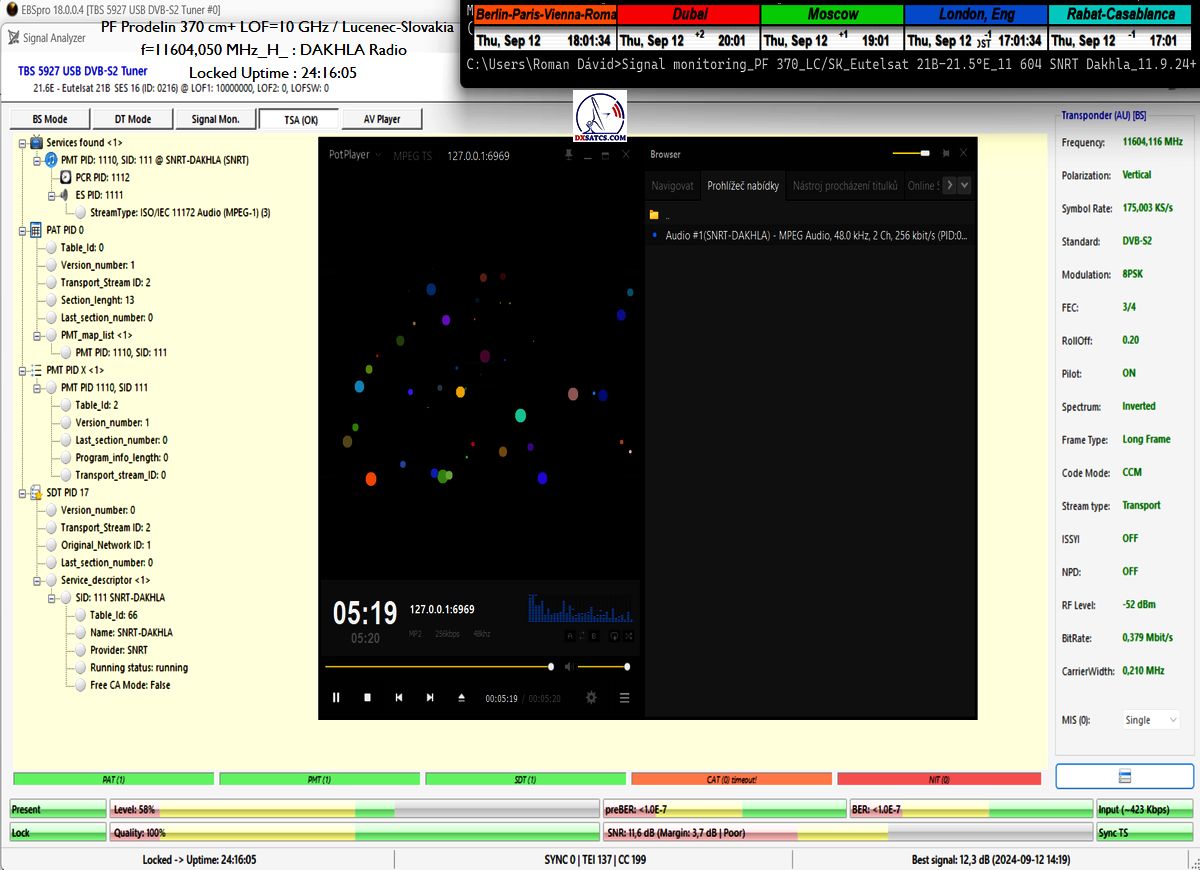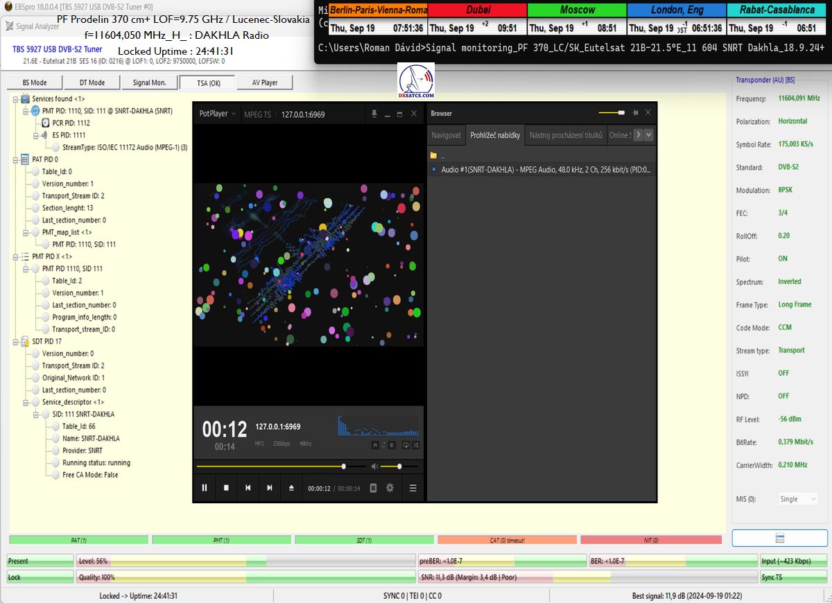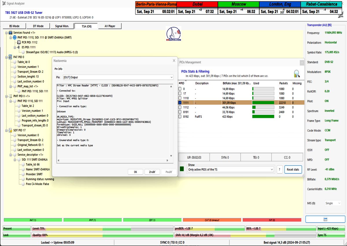 ►►Eutelsat 21B at 21.5°E-Western-11 604,050 MHz-Dakhla Radio : Statistics of PIDs in the TS and HTTP Stream reader