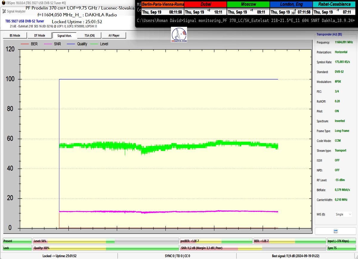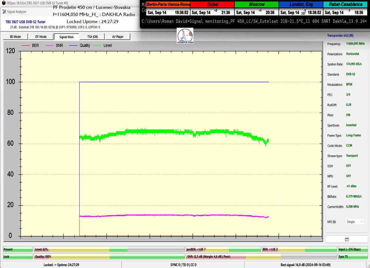 ►►Eutelsat 21B at 21.5°E-Western-11 604,050 MHz-Dakhla Radio: Continuous signal monitoring / Nepretržitý signálny monitoring
