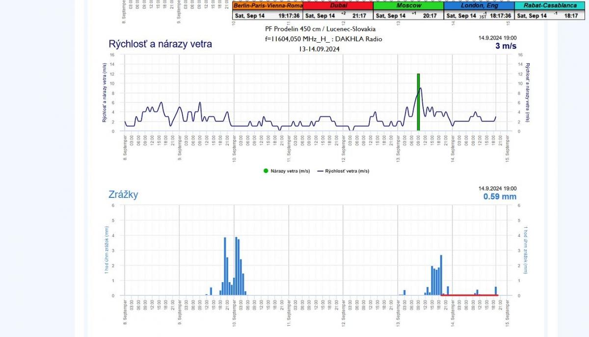 and a bandwidth (CW) of 210 kHz on every oscillator, even during the highest hourly rain totals over the past month at the reception site in Lučenec. The quality