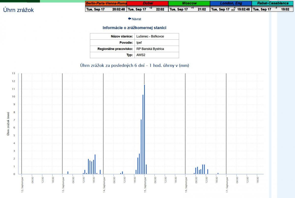 hours before the expected arrival of the most intense rainfall in recent months in Lučenec. I then monitored online to see whether this rainfall intensity would disrupt