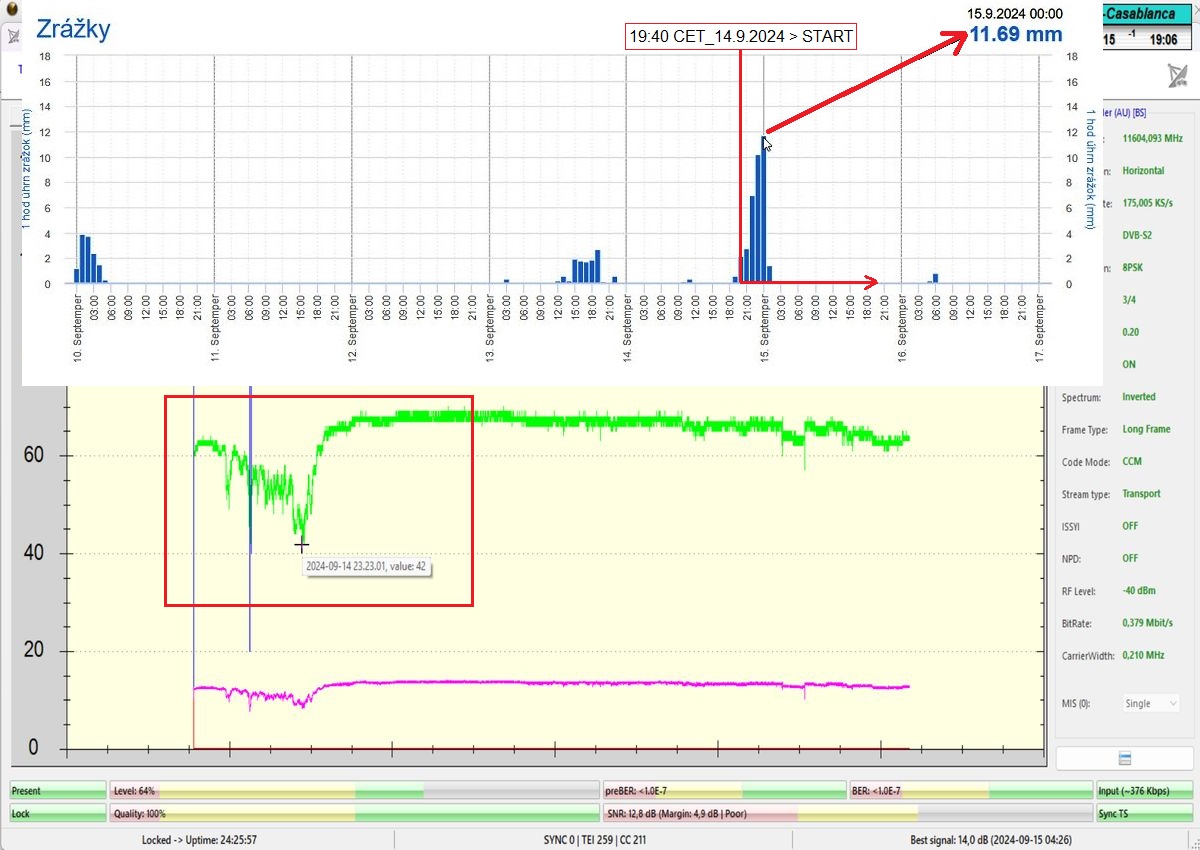 dažďových zrážok v mojej oblasti som zároveň vykonal test stability príjmu v poveternostných podmienkach,ktoré vysoko degradujú výkon,alebo možnú stabilitu príjmu