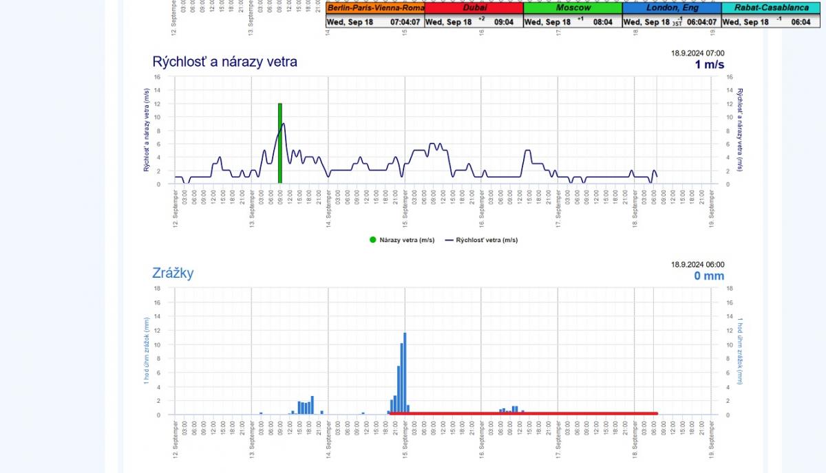 na prelome 14-15.9.2024 bola zrážková činnosť v mieste merani Lučenec/Boľkovce na maxime hodinových úhrnov za posledný mesiac,
