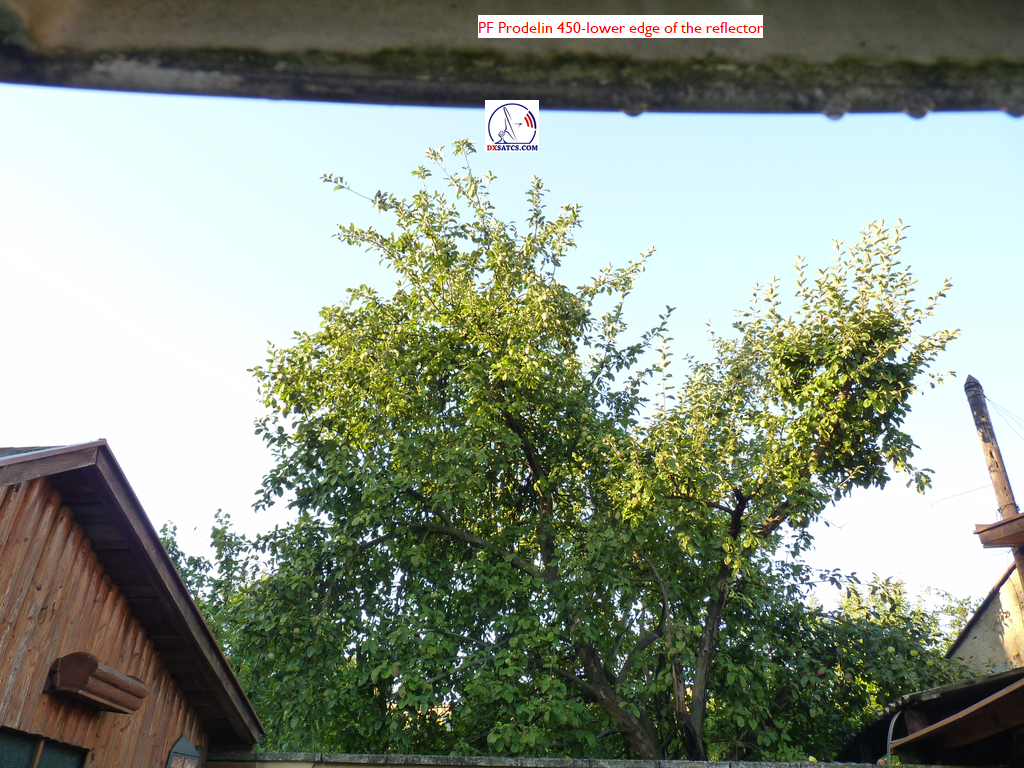 reflektora sa nachádza strom,dráha elektromagnetického vlnenia z družice na inštalovaný reflektore s priemerom 450 cm nie je ničím rušená alebo tienená z hľadiska