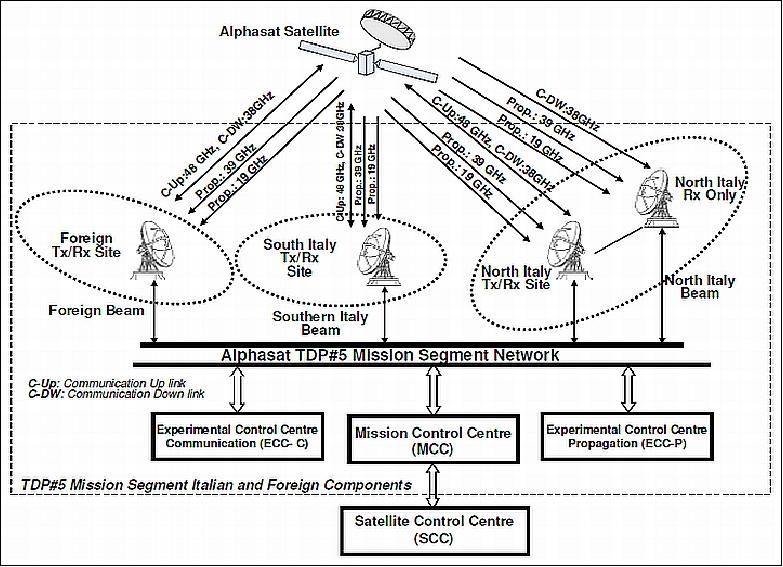 Alphasat: 3x Ground stations                          TDP 5 Ground System                             communication lines