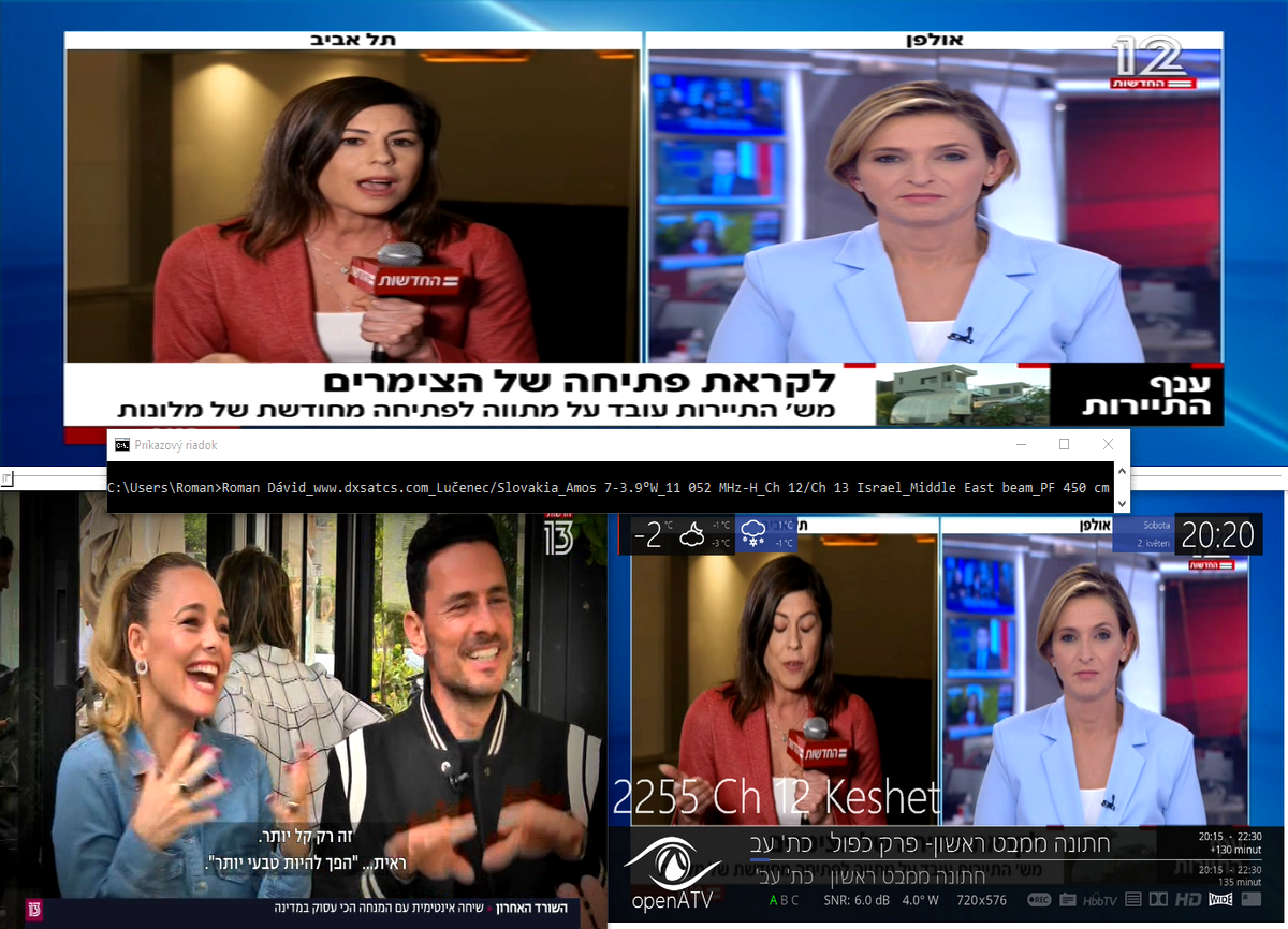 11 052 MHz _H_ Channel 12 Keshet + Ch 13 Reshet Izrael : 24/7_ stabilný LOCK nosnej každý deň aj pri výrazne