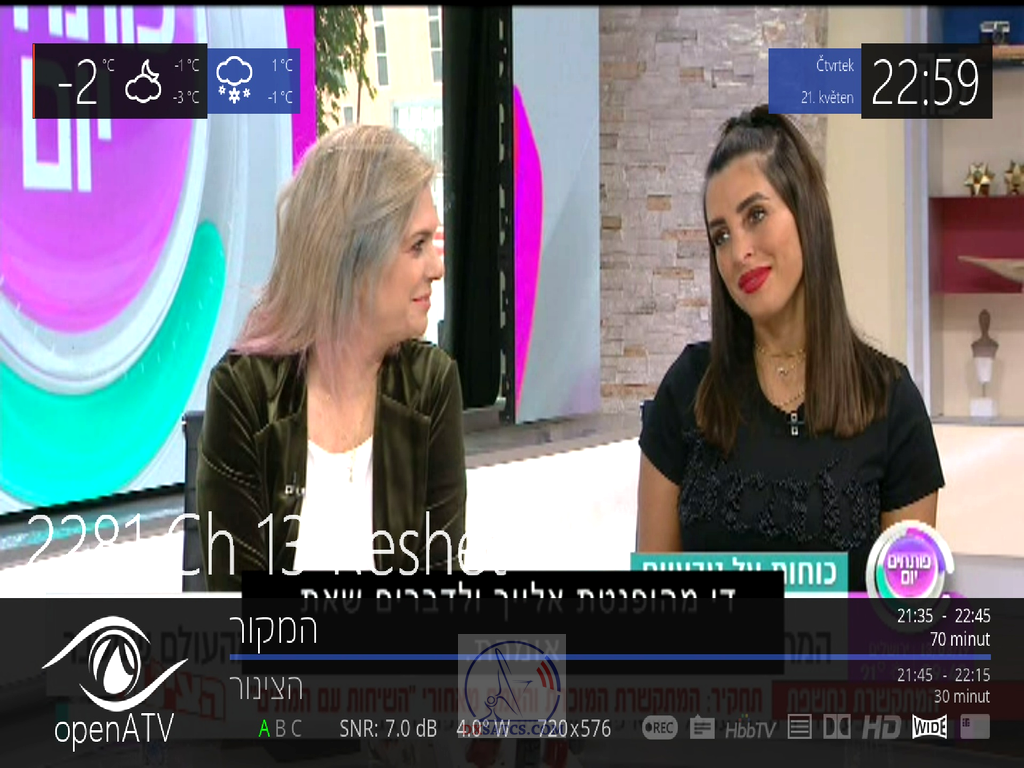 v hebrejskom jazyku,v dĺžke od jednotiek minút až do desiatok hodín + video ukážky (aktivita a  čas spustenia SNG/DSNG feeds kanálov