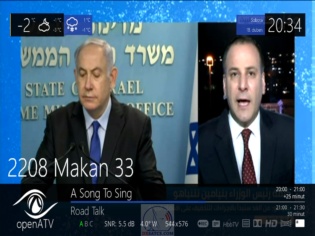 prenosu vo frekvenčnom spektre v definovanej zemepisnej polohe,na súčastnú a zároveň vôbec prvú demonštráciu uzamknutia a kvality príjmu nosnej izraelského tv paketu YES na f=11 554 MHz,ktoré kontinuálne,čiže bez výpadkov v možnosti uzamknutia,trvá od približne 6:00 ráno,už