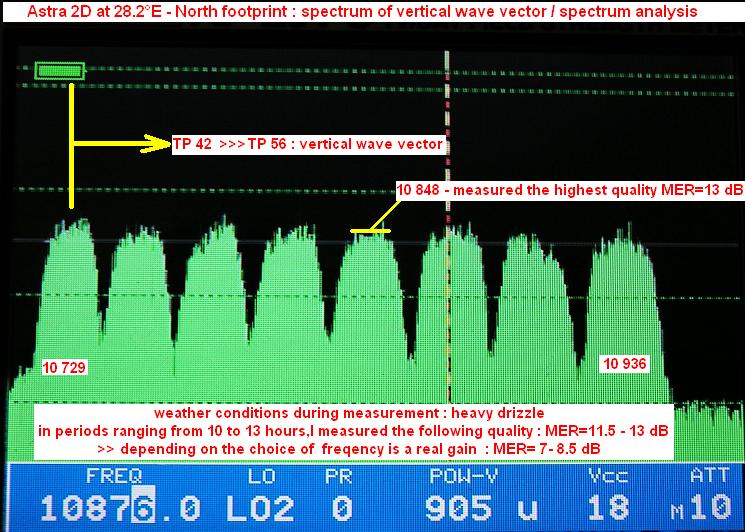 Astra 2D at 28.2°E - H+V North footprint : Radiating diagram & spectrum analysis & quality analysis of reception