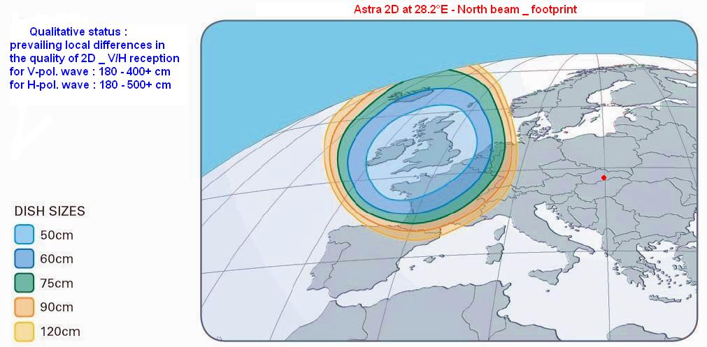 Astra 2D at 28.2°E - North footprint at a geographical point : town Lučenec / central Slovakia