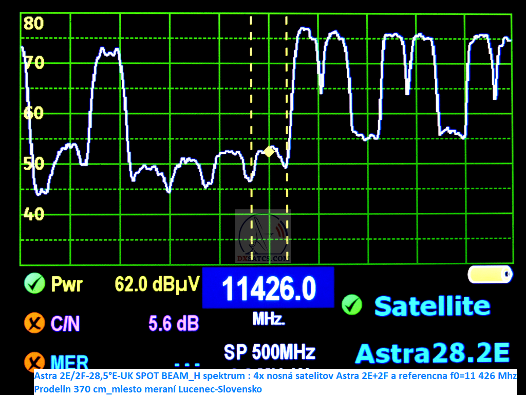 stabilnej formy príjmu na referenčnej frekvencii f0=11 426 MHz satelitu Astra 2E aj s anténou Prodelin 1374-990 RX s D=370 cm