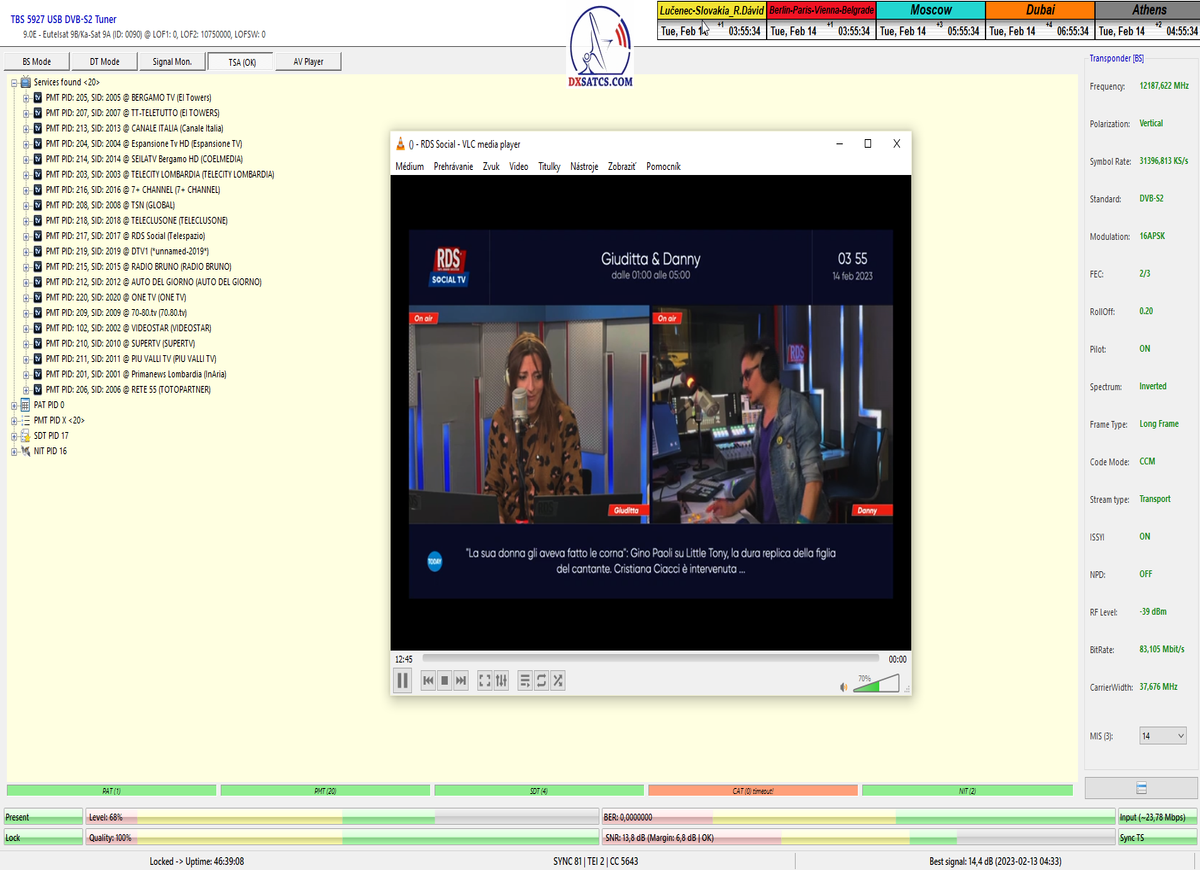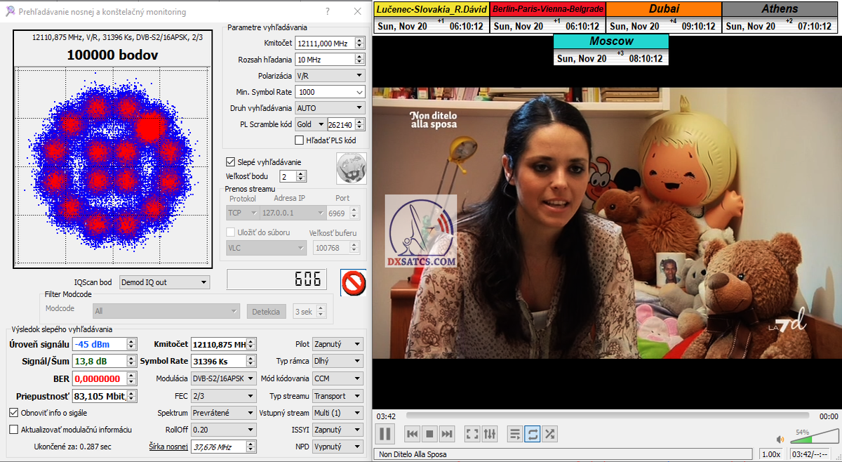 > PARAMETRE PRENOSU : DVB-S2 _ 16APSK _ SR=41 950 _ FEC=2/3 _ PLS Gold 262140 _ Multistream 12-13-17-23 <