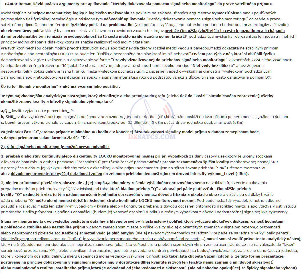 >Autor Roman Dávid uvádza argumenty pre aplikovanie "Metódy dokazovania pomocou signálneho monitoringu" do praxe satelitného