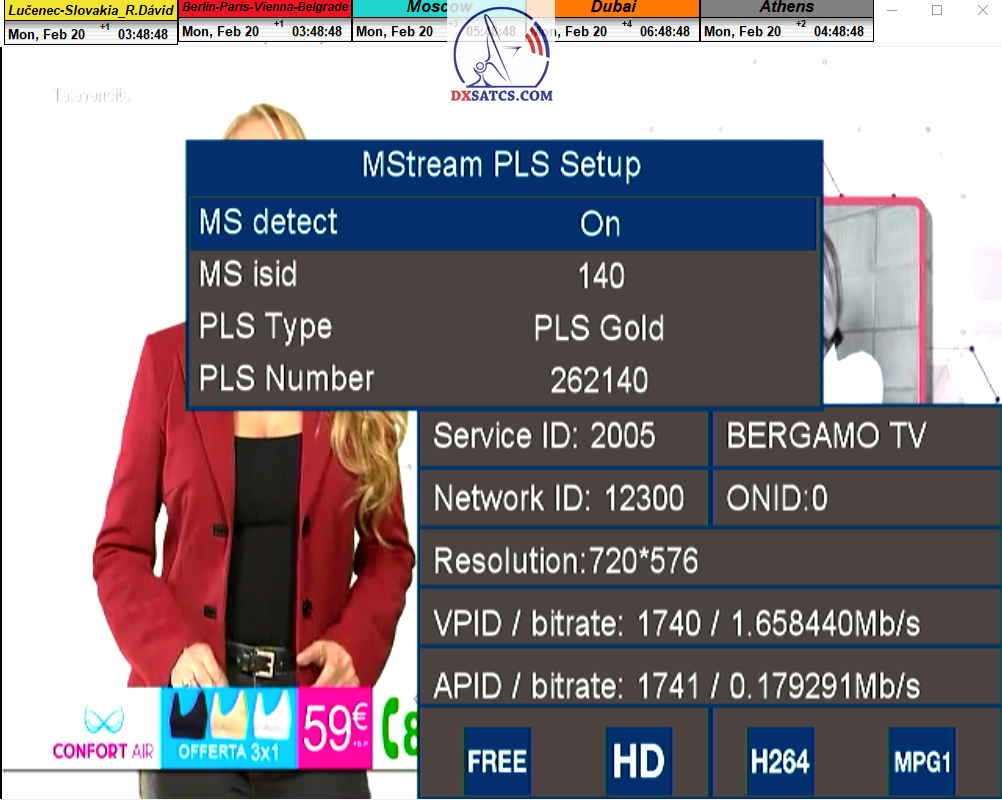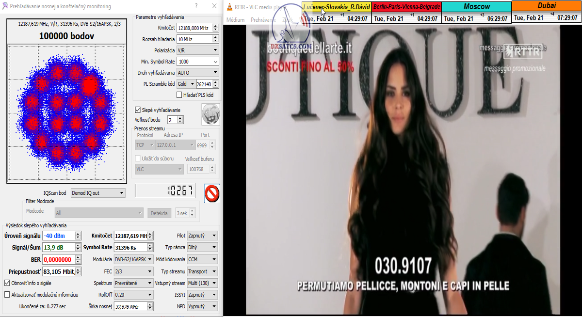 > PARAMETRE PRENOSU : DVB-S2 _ 16APSK _ SR=31 400 _ FEC=2/3 _ PLS Gold 262140 _ Multistream 1-3-4 <