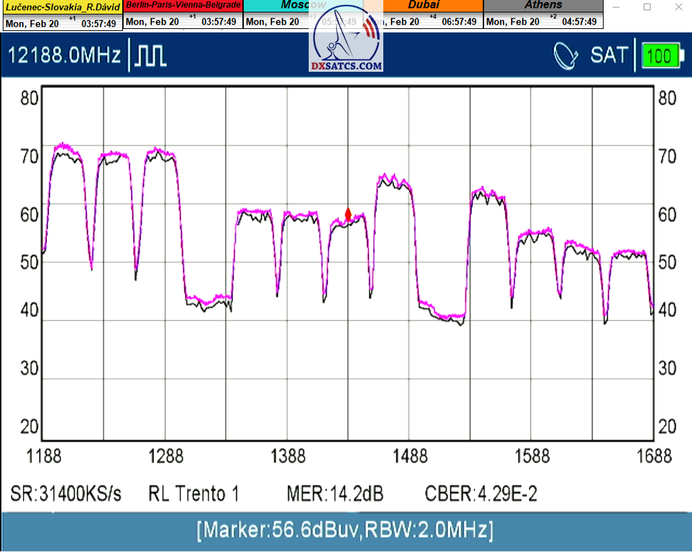 ►22.2.2023 : Okolnosti spojené s výskytom dvoch kvázi anomálnych javov pri kontinuálnom signálnom monitoringu frekvencie f=12 188 MHz_V dva dni po sebe a v porovnateľnom čase ma donútili,za účelom potvrdenia ich atribútu,vykonať doteraz najdlhšiu kvantitu monitoringu až 96 hodín aby som tým potvrdil ojedinelosť týchto kvázi anomálnych javov na výstupe zo symetrického reflektora Prodelin 370 cm.Dosiahol som dokázateľne stabilnú formu príjmu z kategorizácie DTH 24x7 v percentuálnom vyjadrení 99,999%+Po prvý krát uverejňujem typ analýzy spektra Waterfall atď