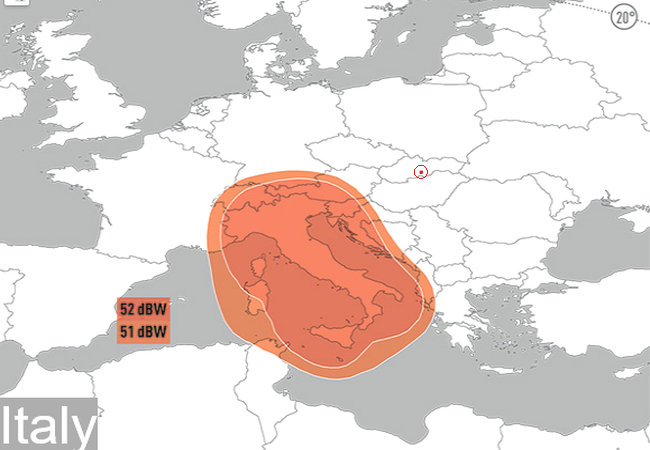 Eutelsat 9B na 9,0°E : Vyžarovací diagram Taliansko