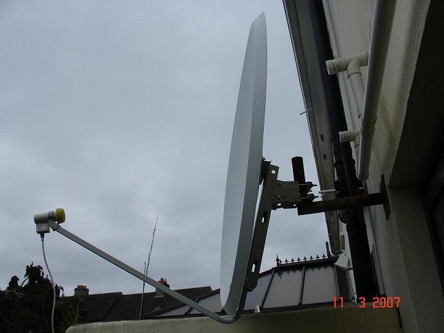 RIEŠENIE PROBLÉMOV S MONTÁŽOU KOMPLETU DIGI TV V ÍRSKOM MESTE DUBLIN,KTORÁ POZOSTÁVA Z OFSETOVEJ ANTÉNY s D=120 cm,LNB GOLDEN INTERSTAR GI 201 a DVB HYUNDAI HSS-1169 .