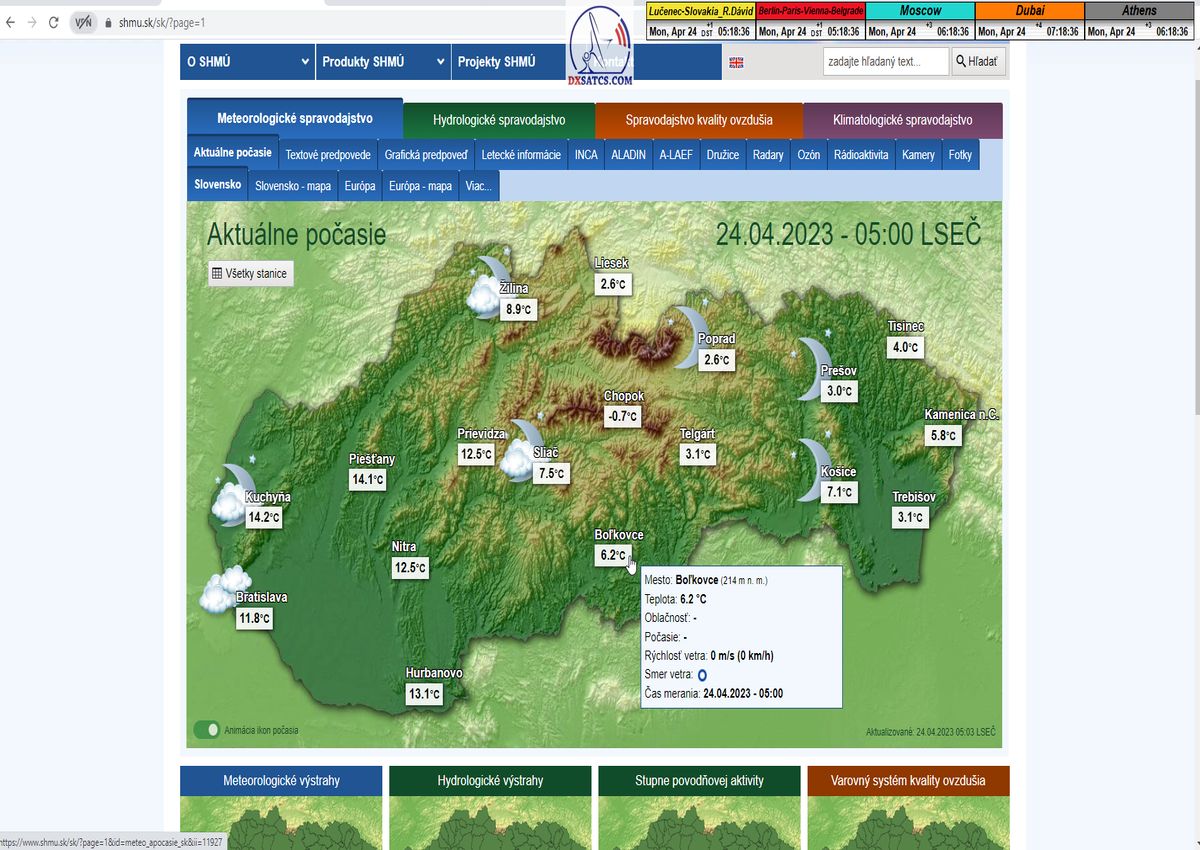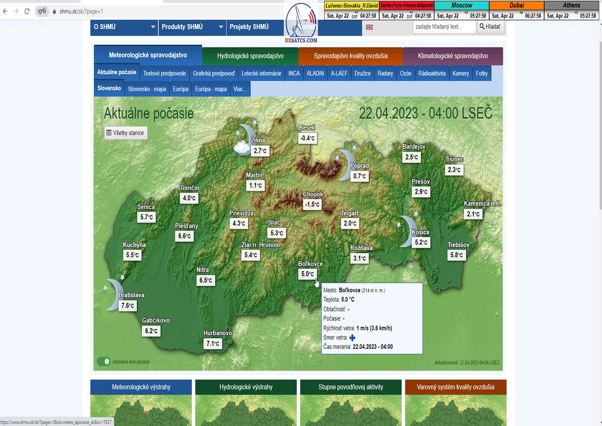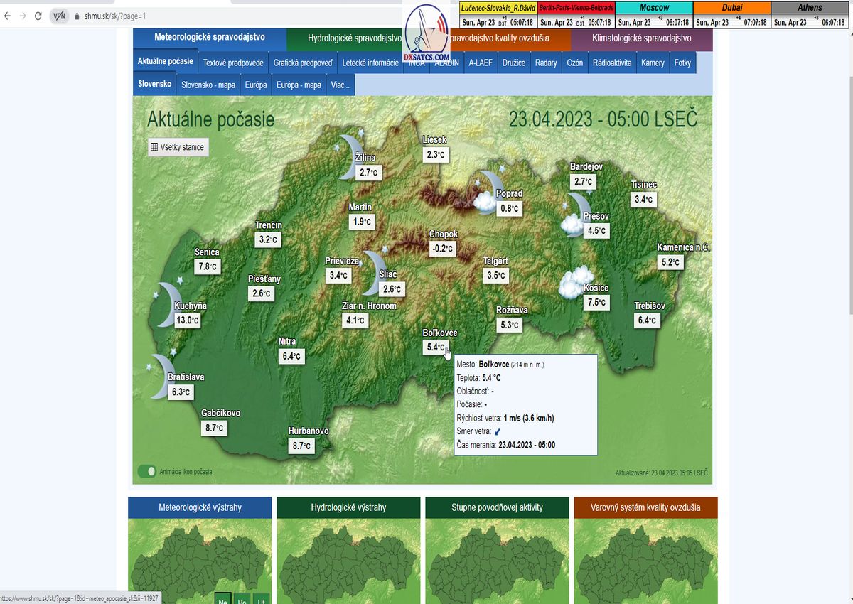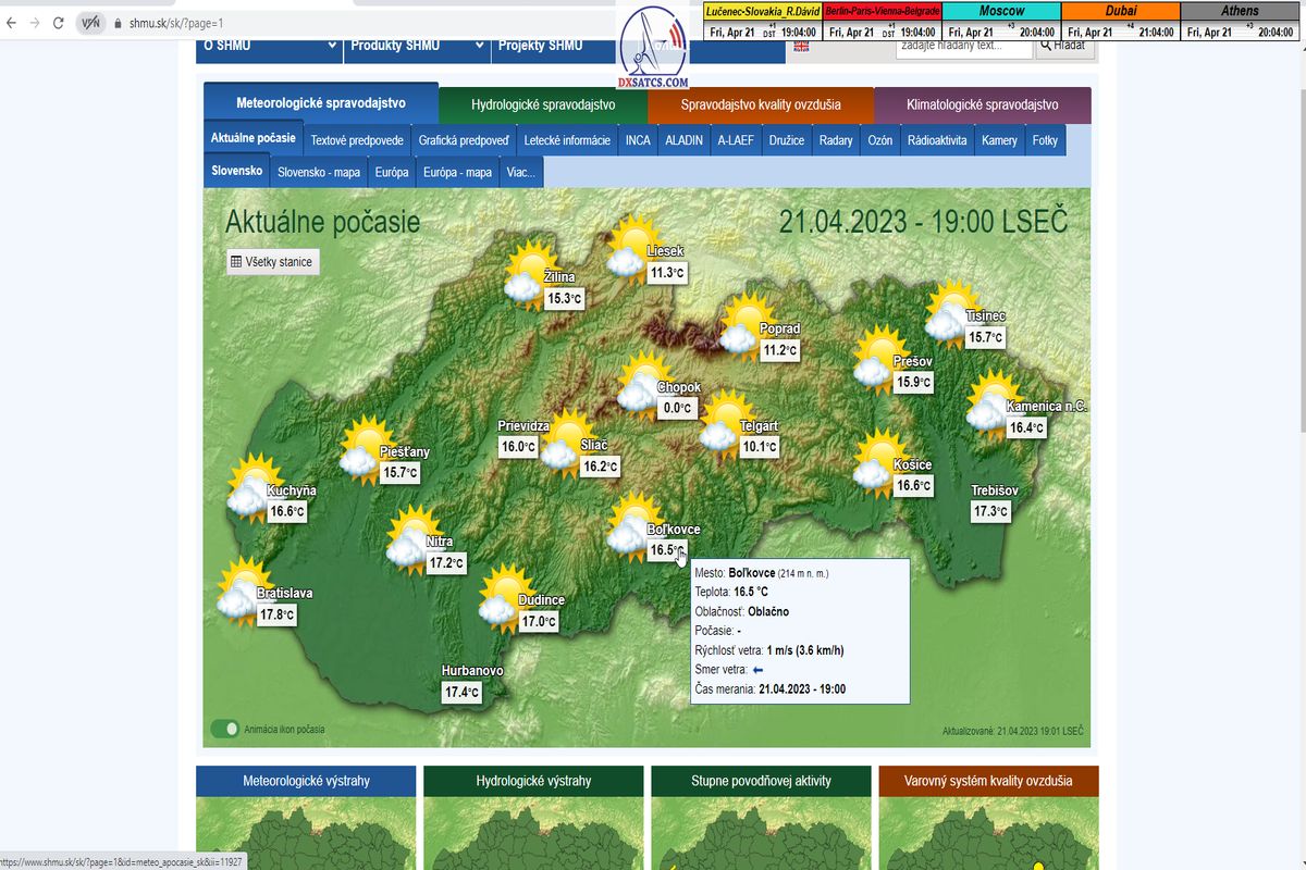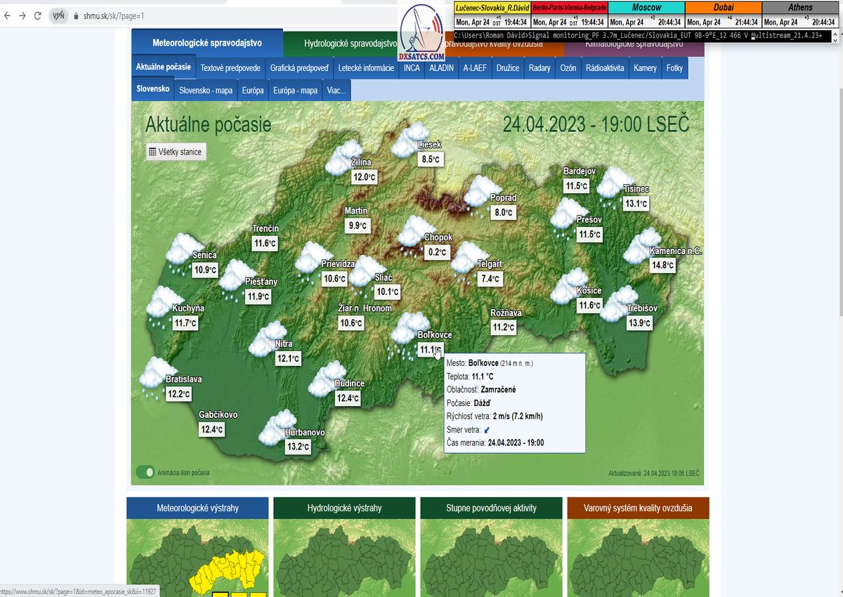 Začiatok signálneho monitoringu dňa 21.4.2023 o 18:57 SEČ  a aktuálna poveternostná situácia