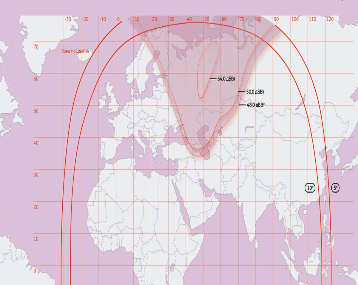festen Strahls (Fixed-1 Beam), vorgesehen für die regionale Abdeckung des europäischen Teils Russlands und angrenzender Regionen vom Satelliten