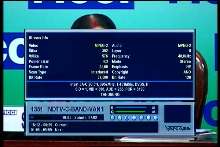 Insat 3A/4B at 93.5°E - C band - 4B footprint : feeds_3 957 H feeds NDTV C band VAN 1_tandberg_SR=1 451 KSymb/Sec