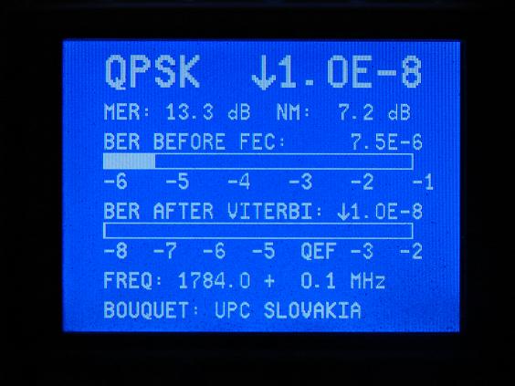 Meranie intenzity a kvality DVB-S paketov ZDF , UPC , CSF , Skylink .... s meracím prístrojom Promax Prolink-4C Premium a s anténou KOVOSAT 120 cm.
