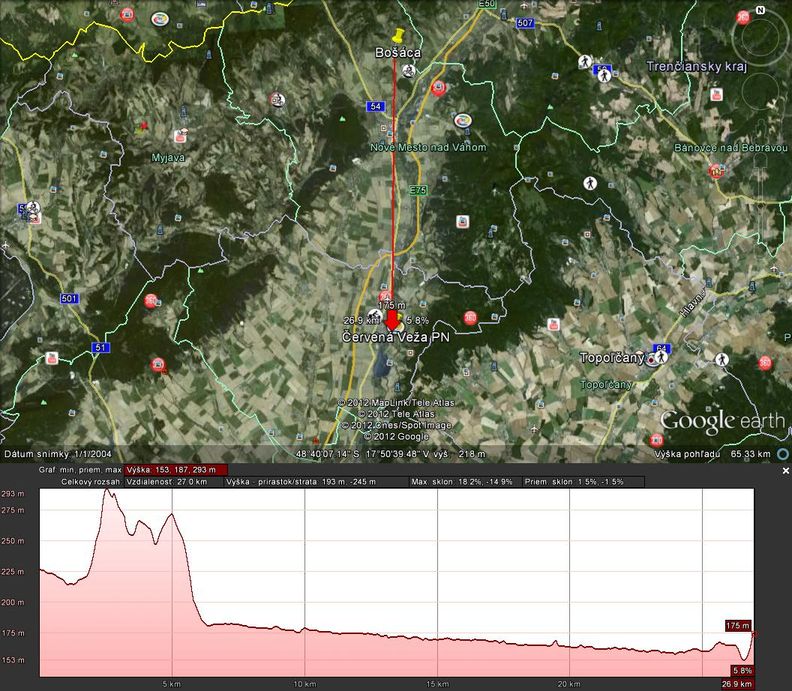 geografické činitele v signálnej trase : sklon reliéfu , nadmorská výška , vzdialenosť /zdroj Google.com/