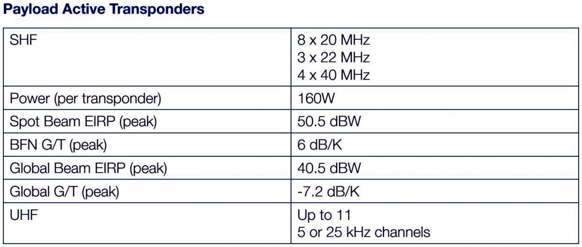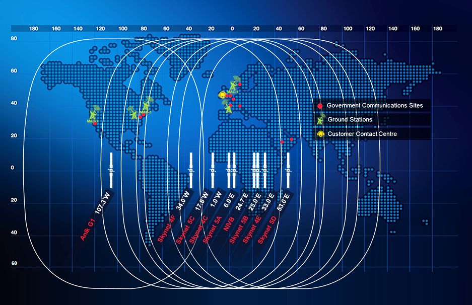 aktívnych kanálov) vojenského a geosynchrónneho objektu Skynet 5D,ktorý je poziciovaný nad Indickým oceánom