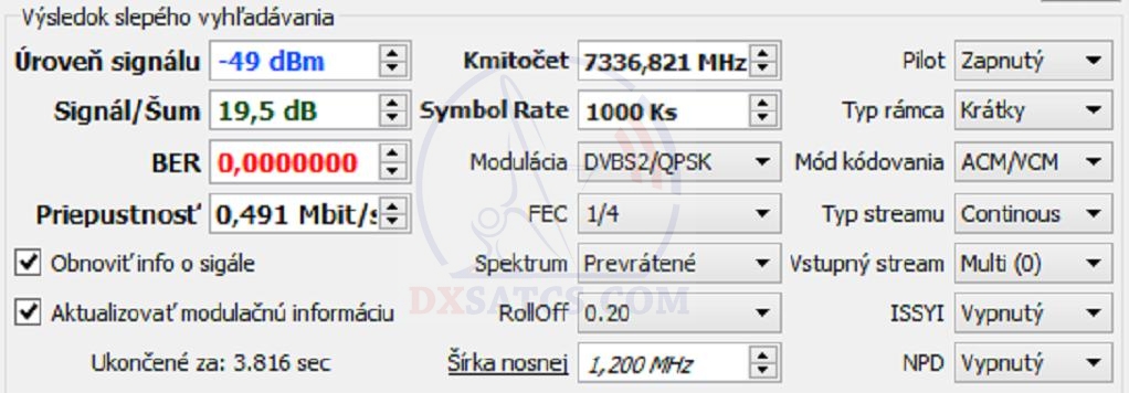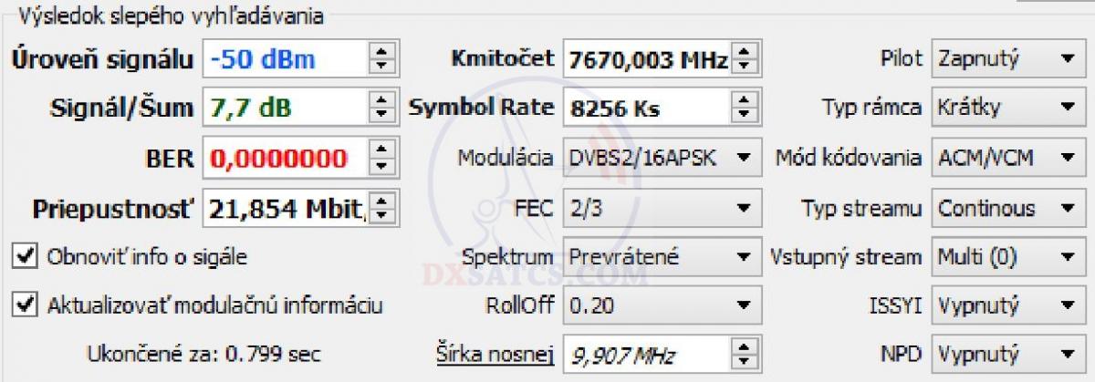 elm. vlnení vo frekvenčnom spektre od 7250 do 7 750 MHz a publikovaniu modulačných parametrov niektorých dátových paketov,
