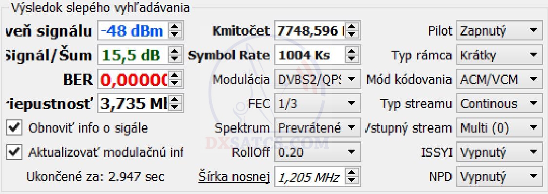 Autor s vysokou pravdepodobnosťou definuje frekvencie identifikačného majáku Beacon na f=7 492.206 MHz stanovuje