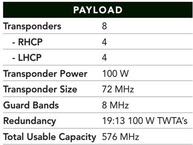 area. It carries a global beam, a fixed spot beam over the Eastern U.S., and three spot beams that can be
