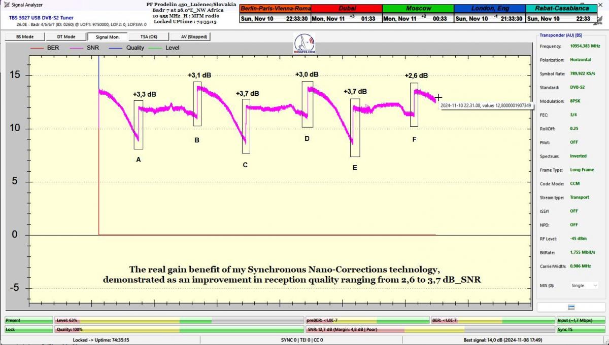 Klasifikácia dosiahnutých výsledkov na f=10 955 MHz : Jedine s pomocou môjho originálneho technologického vynálezu s názvom "Synchrónne nanokorekcie"