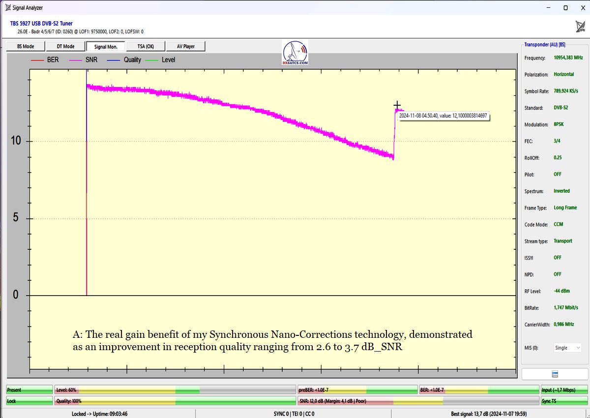 ►Die Qualität steigt sprunghaft und sekundenschnell um bis zu 3,7 dB, von einem SNR-Wert von 8,5 auf 12,2 dB, nachdem ich aktualisierte Daten in das